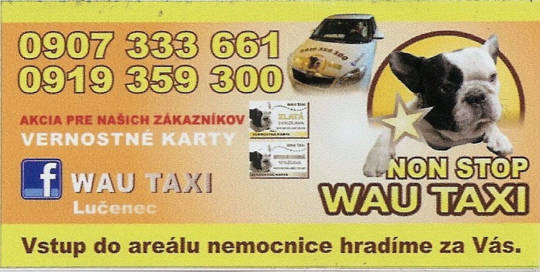 Legújabban a WAU TAXI a losonci kórházba igyekvők helyett állja a gépkocsival való behajtásért fizetendő díjat, így az ügyfél kényelmesen csaknem a rendelő bejáratánál szállhat ki.